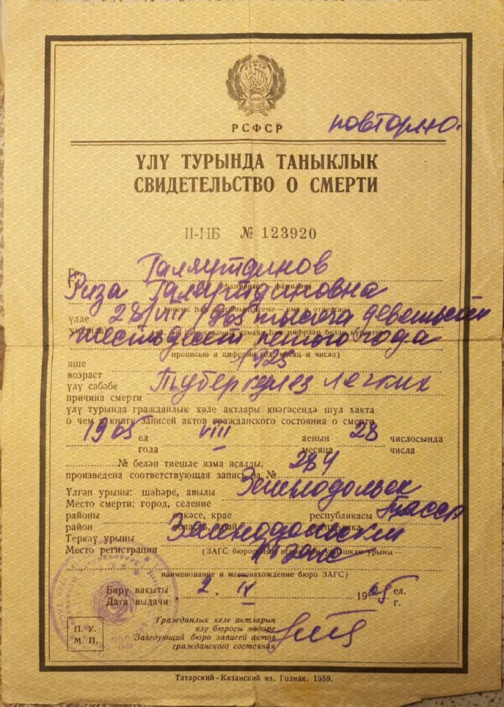 Умер 28 августа 1965 года, причина: туберкулез легких.