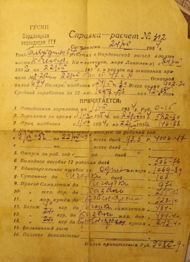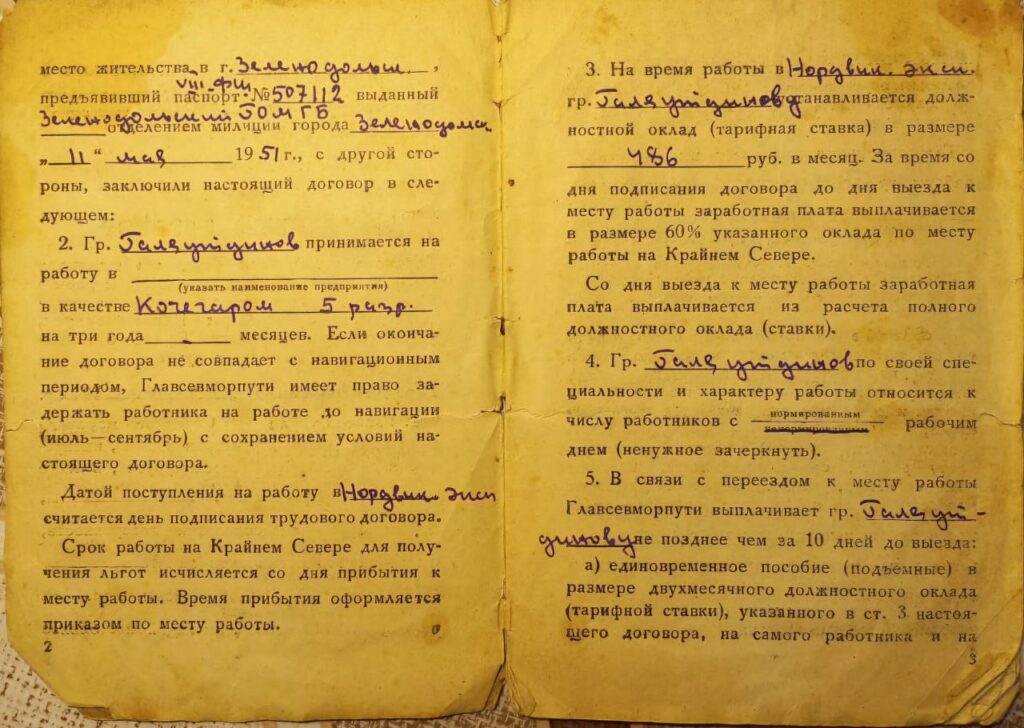 После демобилизации работал крановщиком (машинистом крана), участвовал в Нордвинской экспедиции.