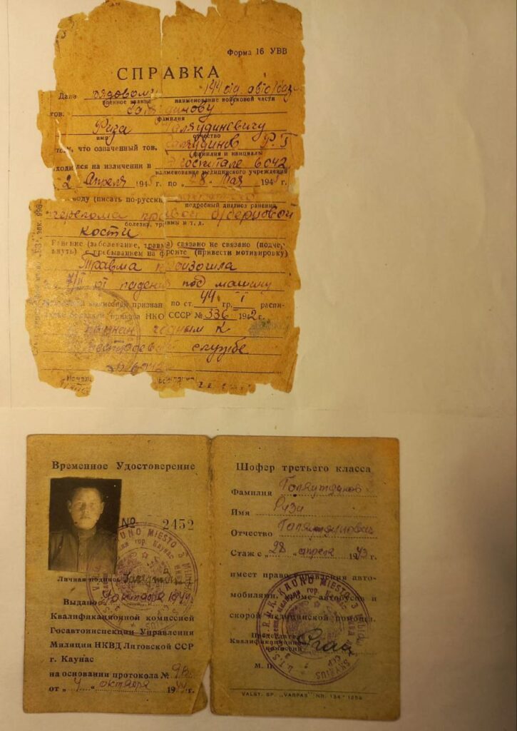 Проходил службу в рядах ВС СССР с 1943 по май 1945 г. в 144 отдельном автотранспортном батальоне 29 моторизованной дивизии. Сохранилось временное удостоверение личности, из которого следует, что 04.10.1944 г. присвоено звание Шофер третьего класса. В феврале получил травму, в связи с чем с апреля по май 1945 находился в эвакуационном госпитале 6042 — перелом правой б/берцовой кости. После окончания войны продолжил службу в ВС (Прибалтика, Харьков). Год демобилизации неизвестен.